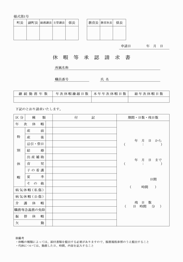 第31条 この規則に定めるもののほか、休暇等に関し必要な事項は、町長が定める。