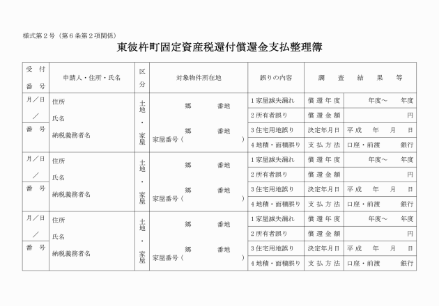 第6条 償還金の決定は、東彼杵町固定資産税還付償還金支払決議書(第1号様式)により決定する。