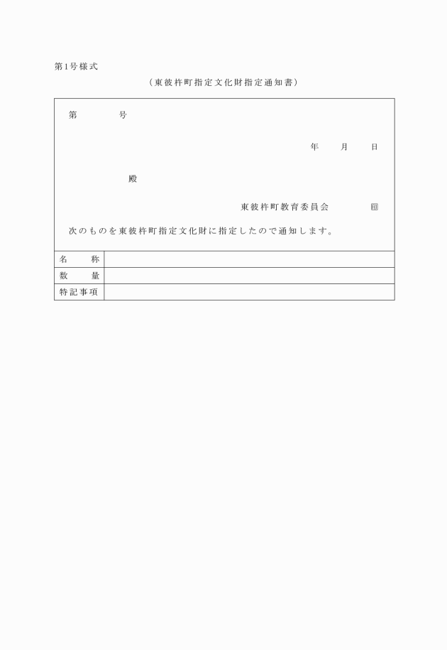 第12条 教育委員会に第11号様式による東彼杵町指定文化財台帳を備えつけるものとする。