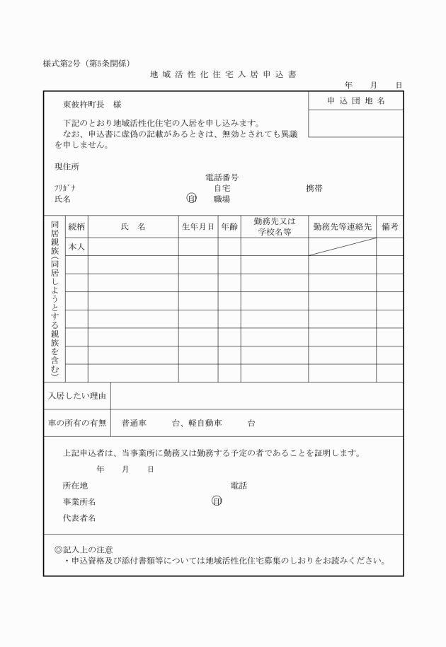 第2条 町長は、地域活性化住宅(以下「住宅」という。)を建設する民間事業者等と東彼杵町地域活性化住宅賃貸借及び土地賃貸借契約書(様式第1号)により契約を締結するものとする。