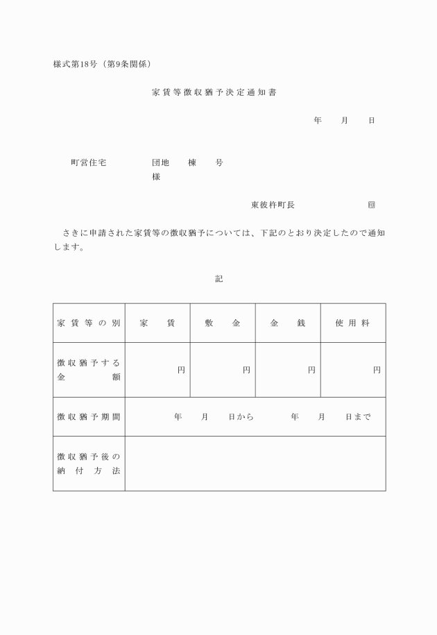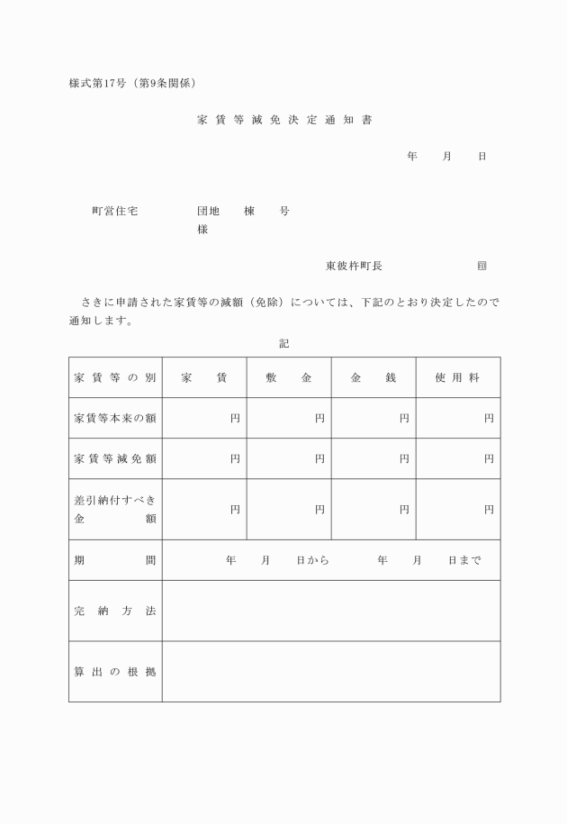 第24条 町長は、条例第55条の規定により家賃を減額するときは、減額期間を定めるものとする。