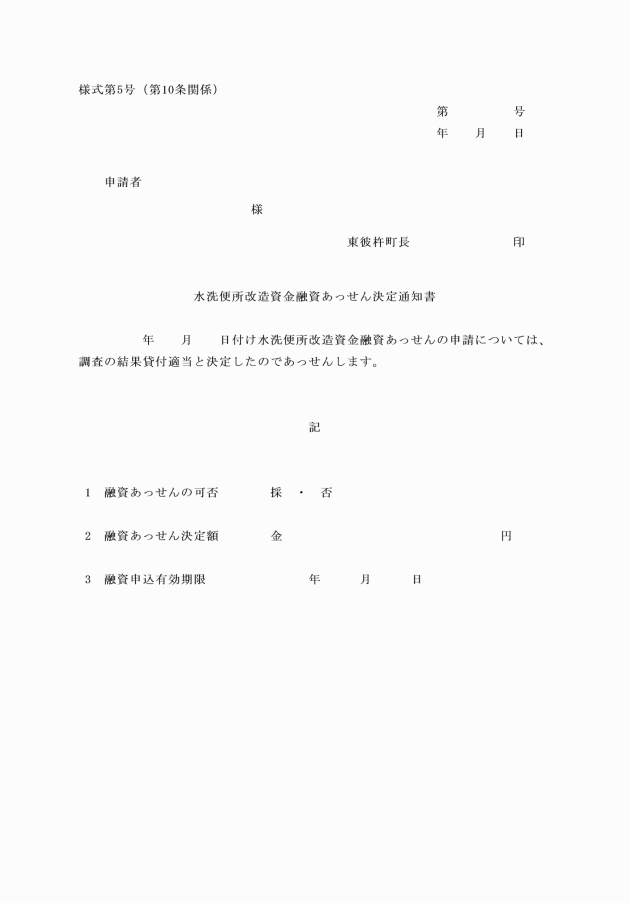 (1) 水洗便所改造資金融資あっせん決定通知書(様式第5号)