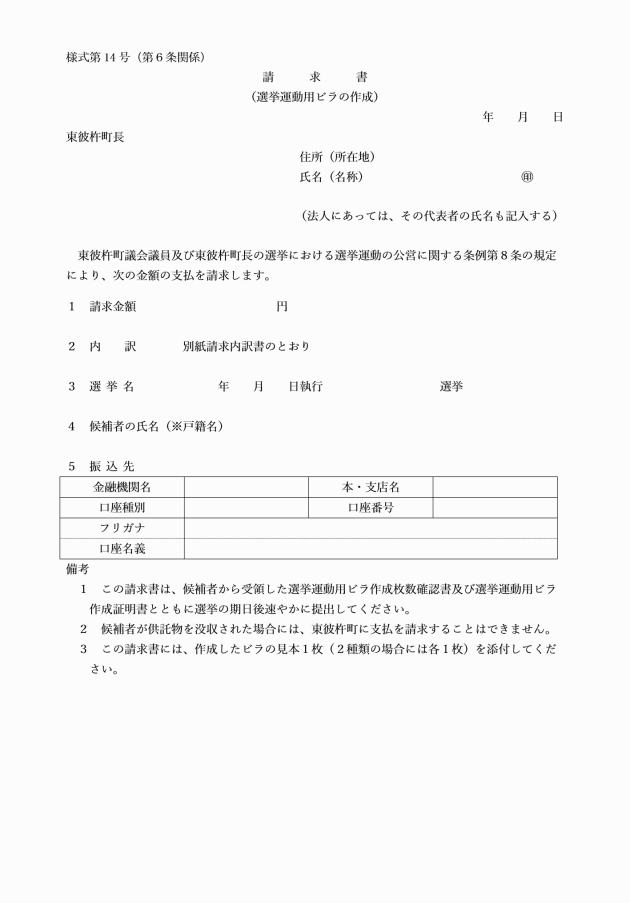 第1条 この規則は、東彼杵町議会議員及び東彼杵町長の選挙における選挙運動の公営に関する条例(令和2年東彼杵町条例第39号。以下「条例」という。)第12条の規定に基づき、条例の施行に関し必要な事項を定めるものとする。